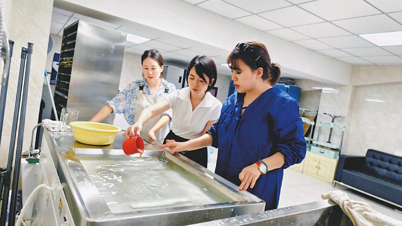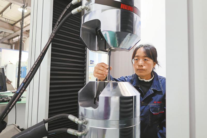 工程师尹晶晶正在评测汽车钢的强度与塑韧性。