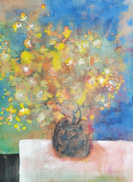 静物一(岩彩画),尺寸:60cm× 45cm。 尉志坚 作