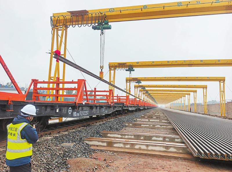 500米长轨抵达铺轨基地。 受访者供图