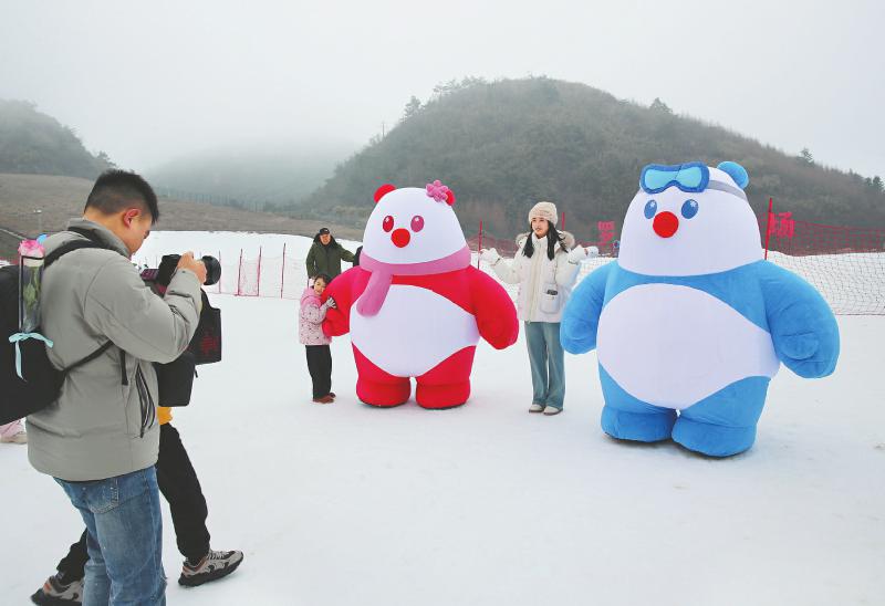 游客在巴山大峡谷罗盘顶滑雪场打卡拍照。 宣汉县委宣传部供图