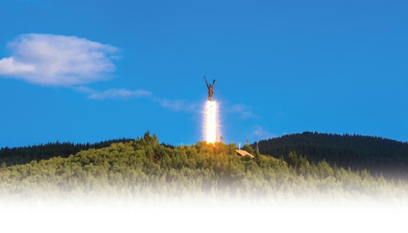 红军长征纪念碑碑园的主碑在夕阳的照射下,蓝天耀金,象征着长征精神永放光芒(资料照片)。 刘军 摄(C视觉)