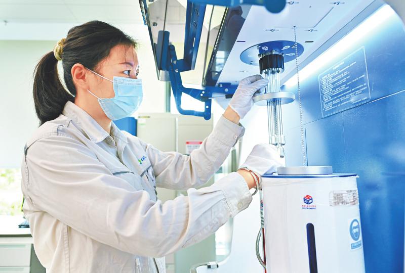 在协鑫锂电研发中心,技术人员正在进行新产品的研发测试。仁寿县委宣传部供图
