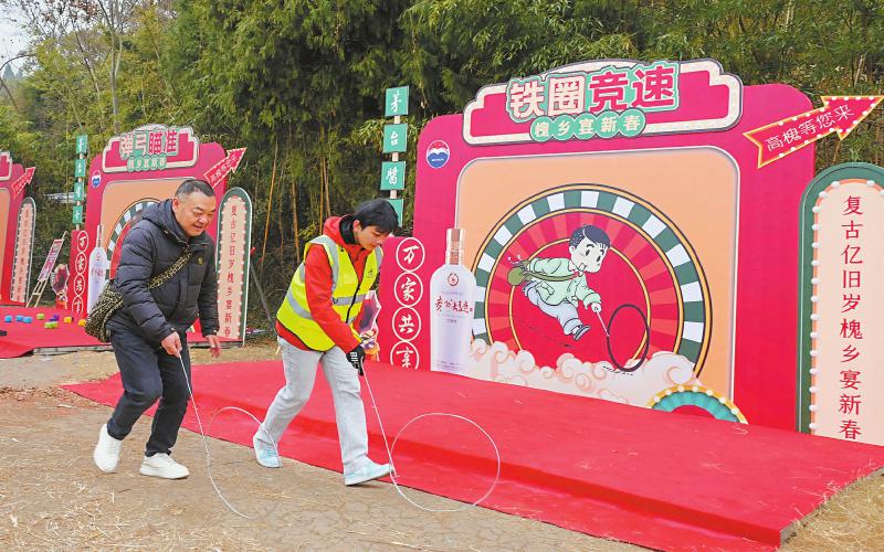 娱 德阳忆旧岁 1月24日,德阳旌阳区高槐村,游客在滚铁环的游戏里感受年味、找回童年。袁凤 摄(C视觉)