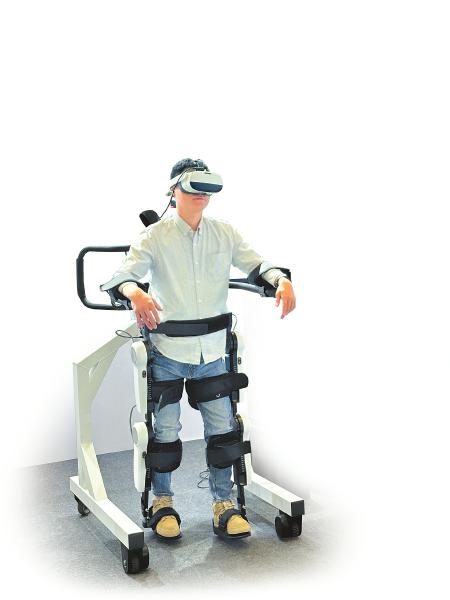 患者试用布法罗自主研发的下肢外骨骼机器人产品。受访企业供图
