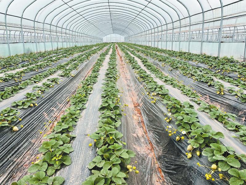 马尔康市松岗镇草莓番茄采摘基地的草莓种植大棚。