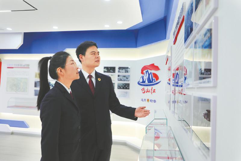 达州市人民检察院青年干警在陈列室参观学习达州检察史。