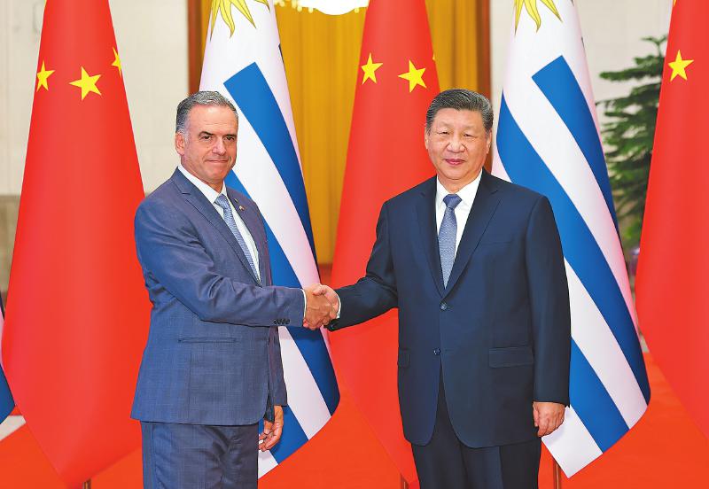 二月三日上午,国家主席习近平在北京人民大会堂同来华进行国事访问的乌拉圭总统奥尔西举行会谈。新华社记者黄敬文摄