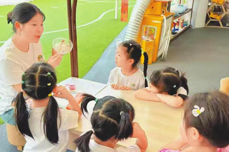 一新建公办幼儿园内,老师正在给孩子上课。