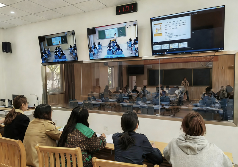“网链共享计划”实施后,老师们在建设好的录播教室里开展远程教学。