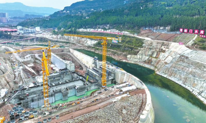 1月21日,巴中市通江县青峪口水库项目建设现场,机器轰鸣、车辆穿梭,一派忙碌景象。 程聪 摄(C视觉)