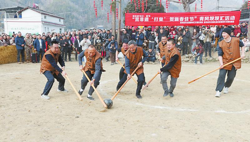 2月4日,广元市青川县乔庄镇孔溪社区,当地群众通过参与青川县首批非物质文化遗产代表性项目——“打臭”,迎接即将到来的马年春节。“打臭”是一项集非遗传承与农耕趣味等于一体的民俗活动。 唐彪 摄(C视觉)