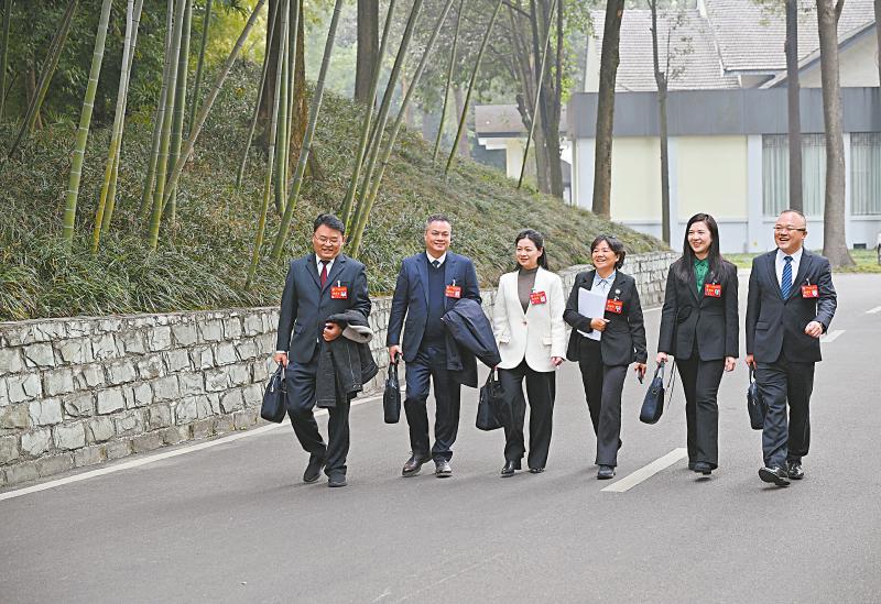 委员们在前往会场途中,交流履职心得。
