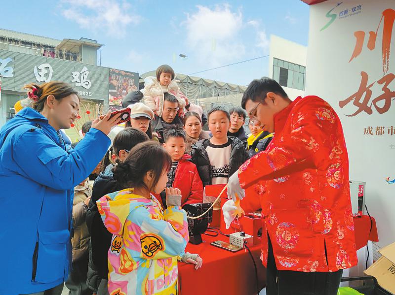 2月5日,成都市双流区首届“村糖会”,打卡人群排队体验吹糖人。 李燕 摄(C视觉)