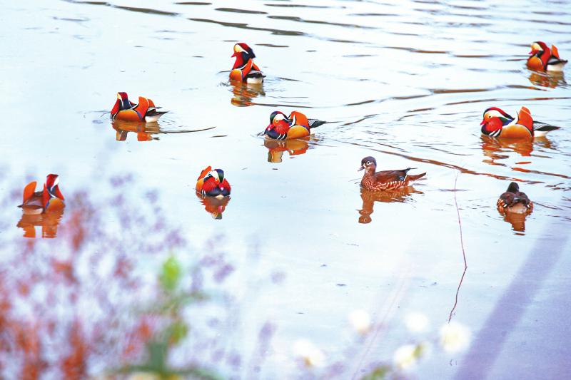 鸳鸯等水鸟在“半米家园”附近水域游弋。 黄刚 摄