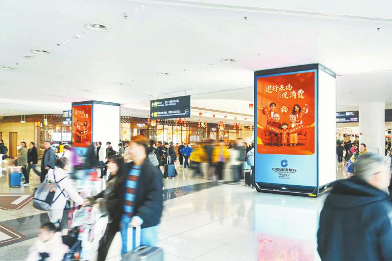 建行四川省分行在成都天府国际机场宣传“建行五福促消费”活动。