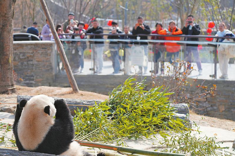游客在绵阳中华大熊猫苑游览。