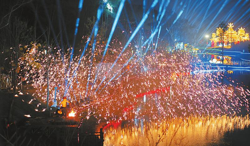 2月11日,广元2026女皇故里彩灯会上的打铁花表演。 本版摄影:四川日报全媒体记者 向宇 赵明 昙昊