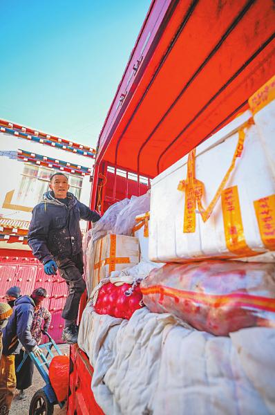 经过昼夜行车,曹俊从成都濛阳农副产品综合批发交易中心拉回10吨果蔬和鲜肉。