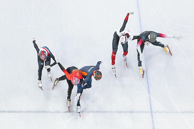 当地时间2月12日,米兰-科尔蒂纳冬奥会短道速滑男子1000米A组决赛在意大利米兰举行,中国选手孙龙以0.028秒之差,一个刀尖的距离获得亚军,为中国队夺得本届冬奥会首枚短道速滑奖牌。图为孙龙(中)冲过终点线。