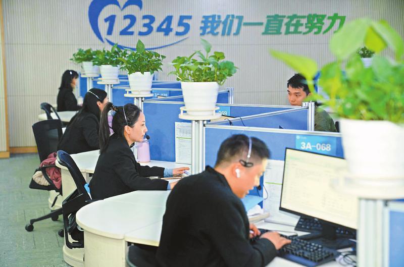 成都市12345热线接听中心的话务员坚守在岗位上。四川日报全媒体记者 吴聃 摄