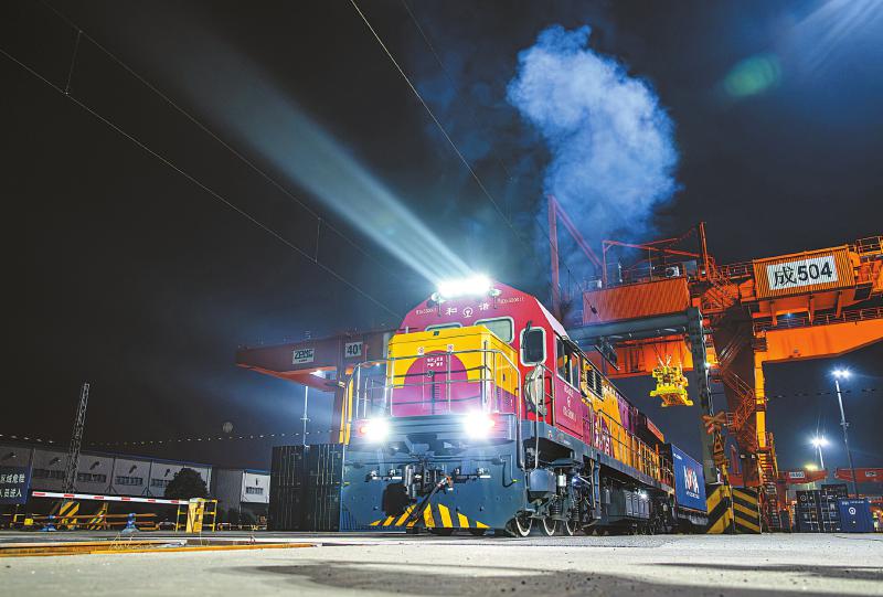 马年第一趟成都中欧班列驶出铁路港。四川日报全媒体记者 何海洋 摄