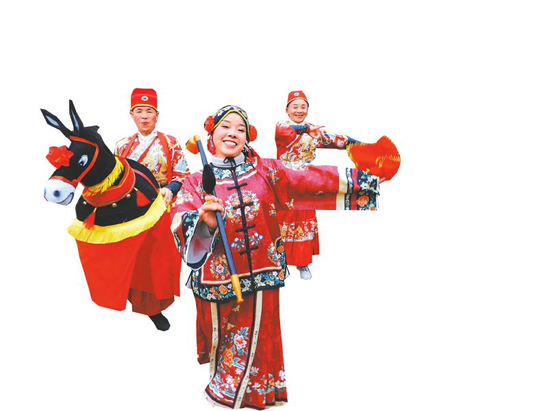 2月17日,在达州市达川区三里坪街道,民间艺人表演《车车灯》秧歌。邓良奎 摄(C视觉)