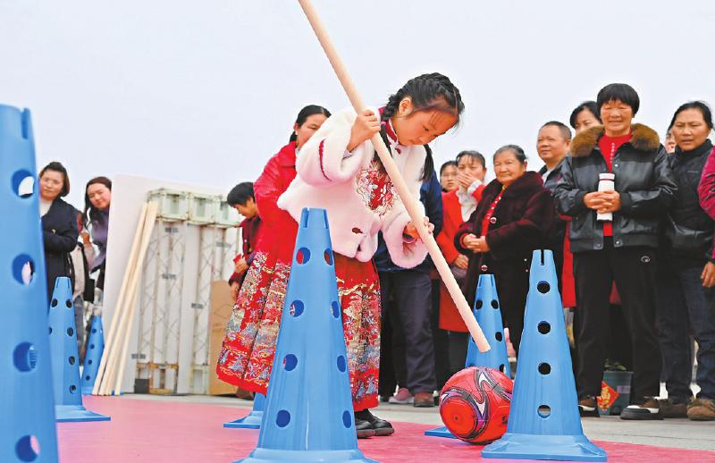 2月17日,内江市东兴区范长江文化旅游园区举办趣味运动会,让市民游客在欢声笑语中参与全民健身、欢度新春佳节。图为小朋友在参加趣味“排雷”比赛。唐明润 摄(C视觉)