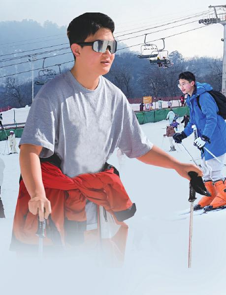 来自绵阳的滑雪爱好者身着短袖驰骋雪道。 四川日报全媒体记者 陈宇 摄