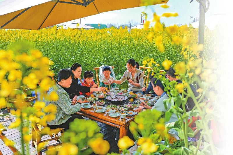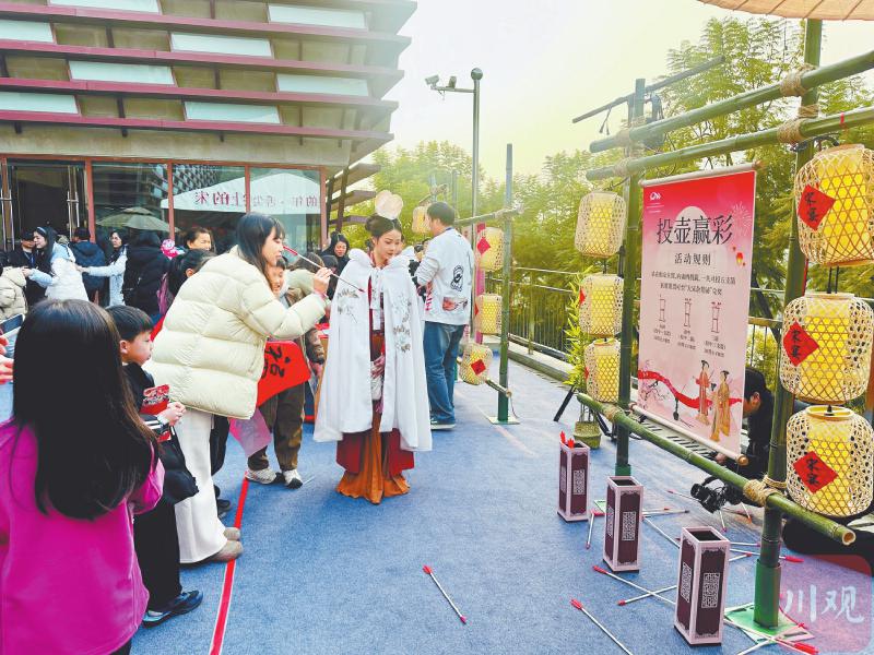 春节期间,成都市新津区天府农博园,游客品尝“花田火锅”。 四川日报全媒体记者 李向雨 摄