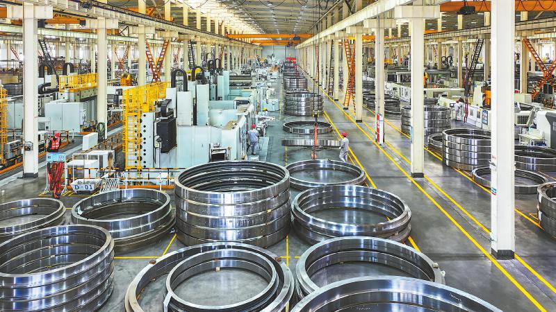 天马精密机械有限公司风电轴承生产车间一派忙碌。白桂斌摄(C视觉)