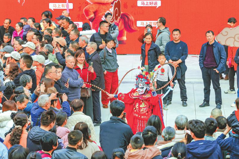 春节期间,老泸州·大河街历史文化街区推出川剧变脸表演。 牟科 摄