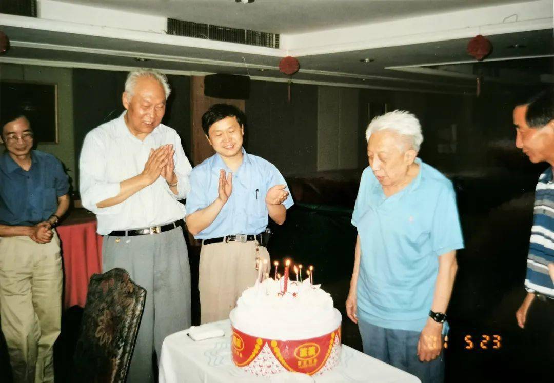 2001年5月,四川省地方志编纂委员会贺何郝炬先生80寿辰(右起:秦安禄、何郝炬、汪毅、岳忠、马国栋)