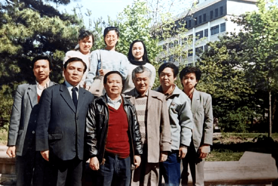 1987年,宋蜀华先生(右三)领衔的导师组与87级硕士研究生留影(前左一为吴恒教授,前左二为邵献书副教授,前右二为祁庆富副教授)