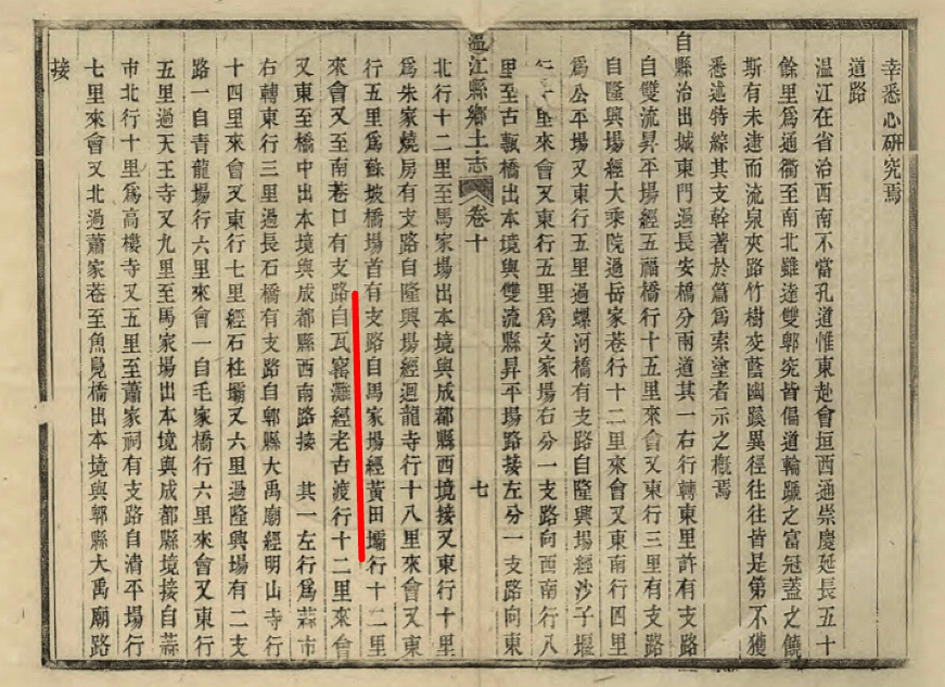清宣统《温江县乡土志》载:有支路自马家场经黄田坝