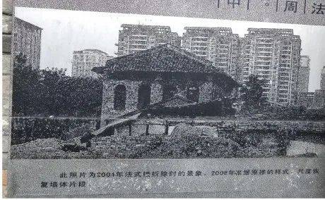 南广场边墙上的小洋楼旧照片(金恒 摄)