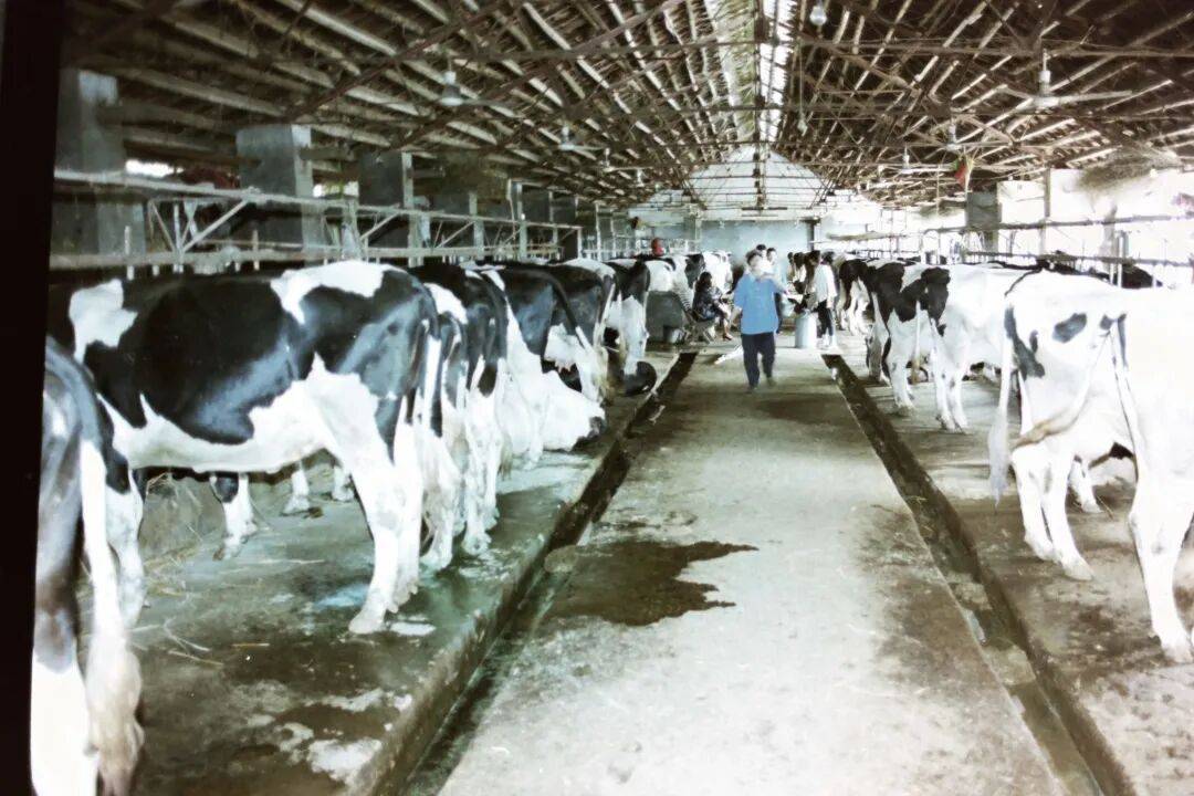 园艺场的职工正在挤牛奶(周晓平 摄)