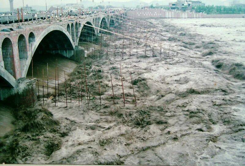 东桥中间有水闸。多数时间,北侧的湖水漫过闸门南去,水量不大,就像一位少女,拖着巨大的裙摆走过,几乎没有声响。洪水季节,上游下了大雨,闸门下降,洪水翻滚,浊浪奔涌,站在桥上就可以听到巨大的流水声音,看见浑浊的河水腾起白色的浪花,旋即又消失了。