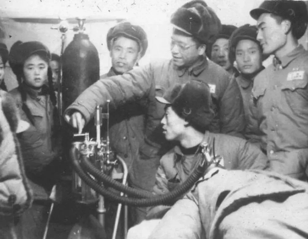 杨振华在抗美援朝战地医院进行医疗器械操作示范指导(武侯区地志办提供)