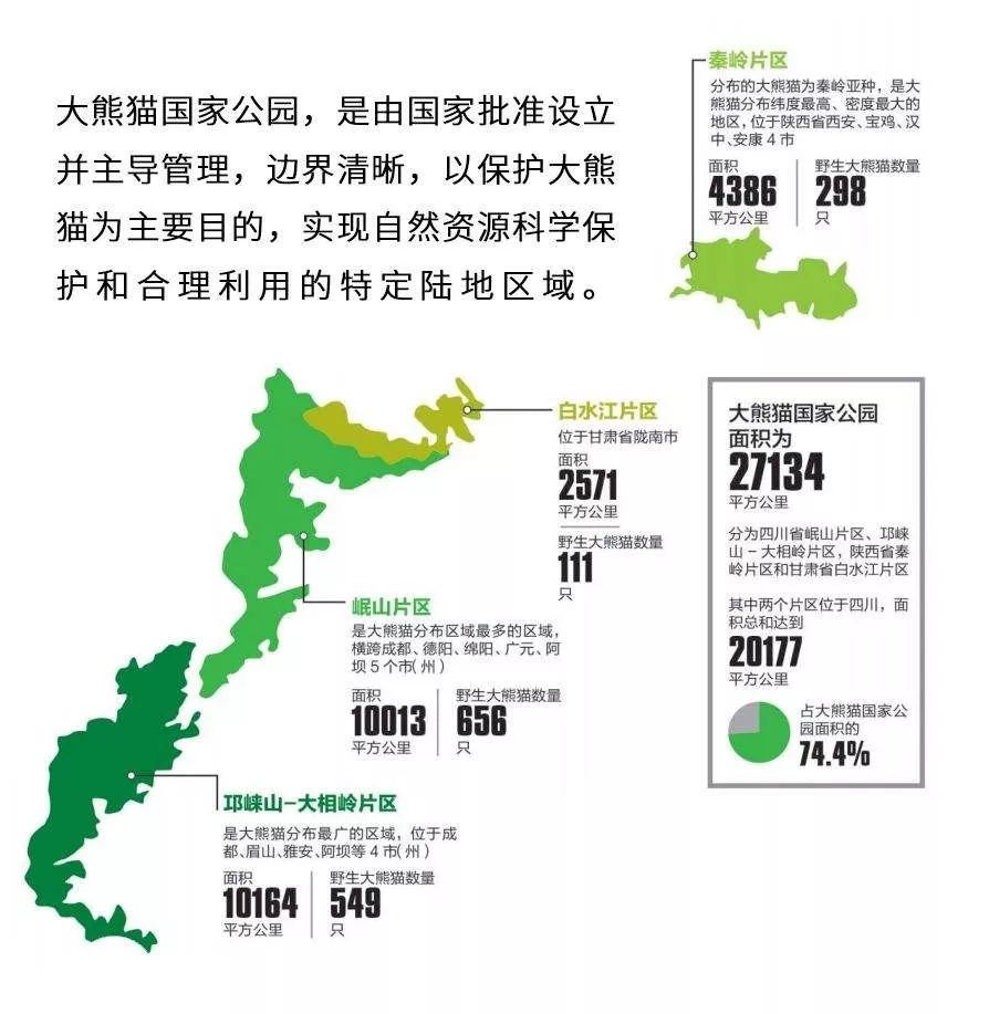 2017年以来,国家整合川陕甘资源,大熊猫国家公园建设持续推进。国家公园总面积2.7万平方公里,其中四川超过2万平方公里,包括核心保护区、生态修复区、科普游憩区、传统利用区。