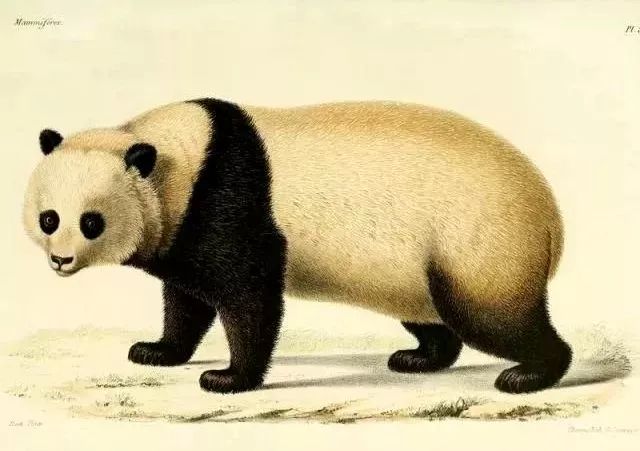 巴黎自然历史博物馆科学家阿尔封斯·米勒·爱德华兹根据1869年阿尔芒·戴维神父带回的标本绘制的大熊猫图(图片来自网络)