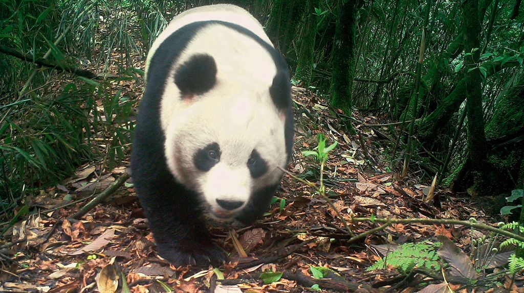 野生大熊猫在瓦屋山保护区自由活动的高清晰度照片 ( 红外相机拍摄的正面,瓦屋山自然保护区管理局 王家才 供图 )