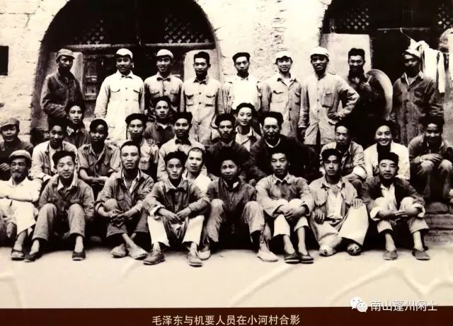 1947年7月,毛泽东和随同转战的机要人员在陕北靖边县小河村合影(2017年4月中国建筑工业出版社崔振林摄于延安革命纪念馆)