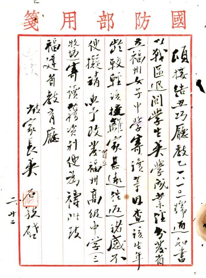 1942年,福建鼠疫肆虐,严重影响当地民生与军队后勤。当时,吴石虽然在广西柳州任职,但心系桑梓,于6月致信国民政府福建省政府主席刘建绪:“兹有蔡庆璋君,陆军兽医学校毕业……因感省内各地兽疫时起,影响农业綦钜。而省内兽医专门人才甚乏,防治鲜效……如能使其负畜牧兽医事务所责任,定能胜任。”字里行间透露出对故乡民生的深切关怀。