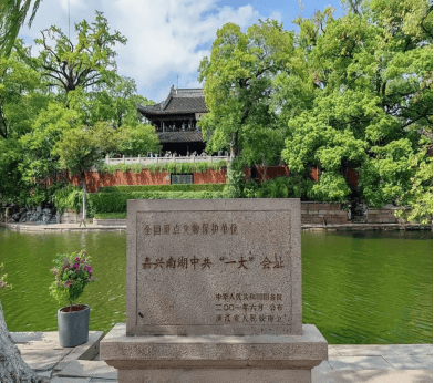1921年8月,党的一大在烟雨楼下南湖水面上的一艘丝网船船舱里闭幕。由此,烟雨楼成为中国共产党诞生的重要见证。