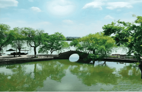 热心的嘉兴市民得知我们从四川专程来瞻仰红船,便向我们推荐了一条上佳参观路线。他们有滋有味地告诉我们,苏东坡曾3次来嘉兴,先后到湖心岛、三塔寺、本觉寺、壕股塔、真如寺交友、煮茶、喝茶。市民还打趣我们:“红船上有八仙桌和麻将扑克,但不能上去‘码长城’和‘斗地主’哟!”按照他们的建议,我们首先来到南湖革命纪念馆。