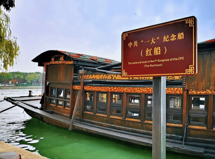如今,南湖革命纪念船已经成为红色旅游的一个热门景点。每一个踏足嘉兴的游客几乎都会来到南湖烟雨楼前,虔诚拜谒这艘承载着一个开天辟地大事的丝网船。人们争先恐后摆出庄重姿势,与红船合影留念。