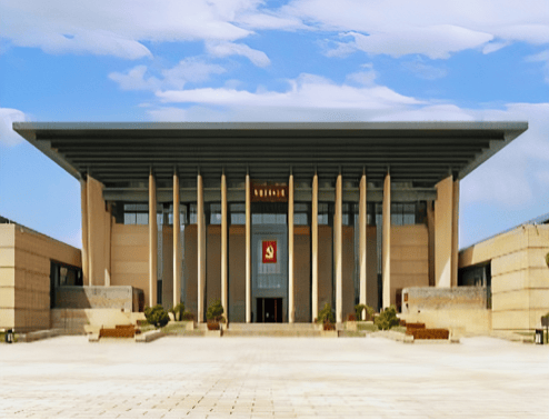 南湖革命纪念馆成立于1959年10月1日,其馆舍几经变动。我们参观的纪念馆为该馆的第三代馆舍,当地居民称之为新馆。新馆气势宏伟,呈“工”字形布局,四周立有56根檐柱,象征着全国56个民族紧密团结在工人阶级先锋队周围。