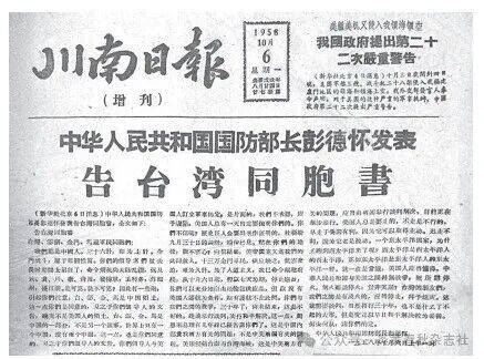 1958年10月6日,《川南日报》刊登的《告台湾同胞书》