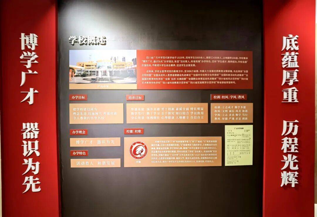 21世纪以来,广元中学的教育质量稳步提升,学校的硬件建设和文化建设比翼齐飞。2013年,以苏国刚为校长的新一届领导班子上任以来,审时度势,通过回顾、反思、前瞻,痛下决心革积弊,狠抓管理促发展,学校驶入与教育强国建设征途同频共振、高速发展的快车道,校风校貌和教育教学发生了根本性转变。黉门巍峨,莘莘学子志鸿鹄;展馆弘毅,百年文脉传薪火;馆藏琳琅,独冠巴蜀耀日月;作品璀璨,融贯古今纳春秋。