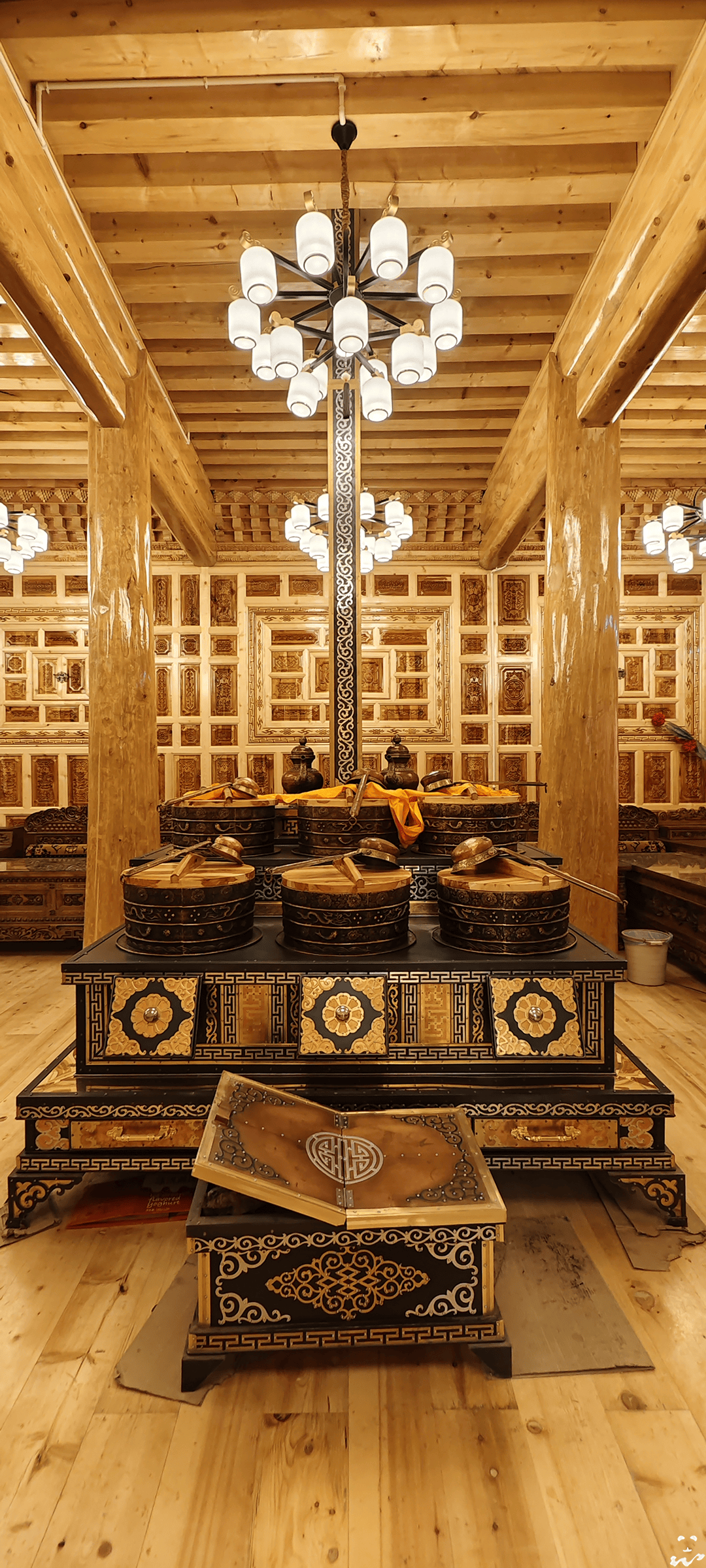 顶部留天窗,开可通风、排烟、散热,合能防风雨、保暖,前有一篷布做门,开合自如;一般帐篷室内面积20平方米,大者达二三百平方米,可容数百人。